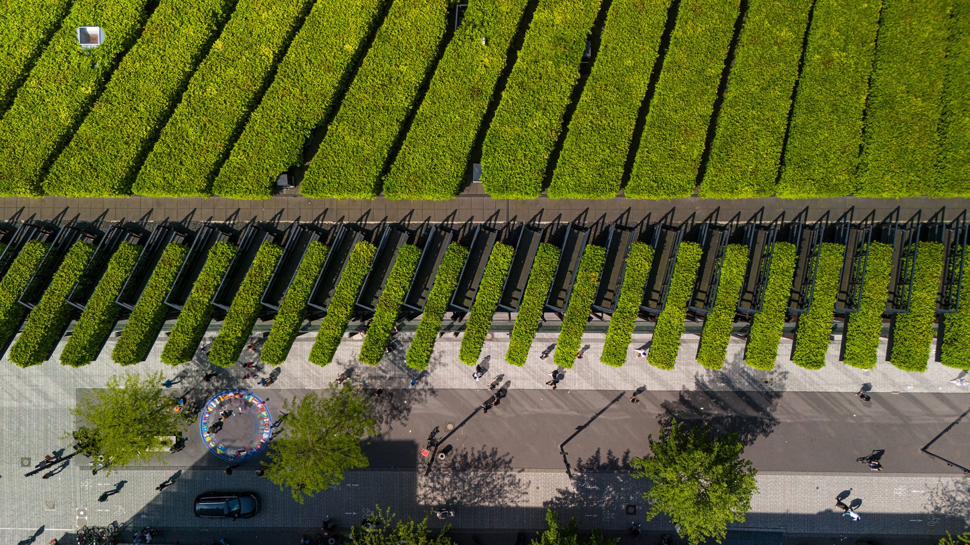 Europas größte Grünfassade – Mit seiner begrünten Außenfassade trägt der Gebäudekomplex maßgeblich zur Klimaneutralität und einer ökologisch verantwortungsvollen Zukunft bei.